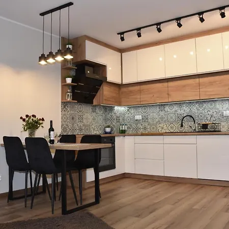 Es gibt zudem eine Küchenzeile mit einem Wasserkocher, einem Kühlschrank und Küchenutensilien. Dieses Apartment ist in unmittelbarer Nähe von der Bushaltestelle Dobrzecka Mickiewicza. Zur Unterkunft gehört auch eine Terrasse.